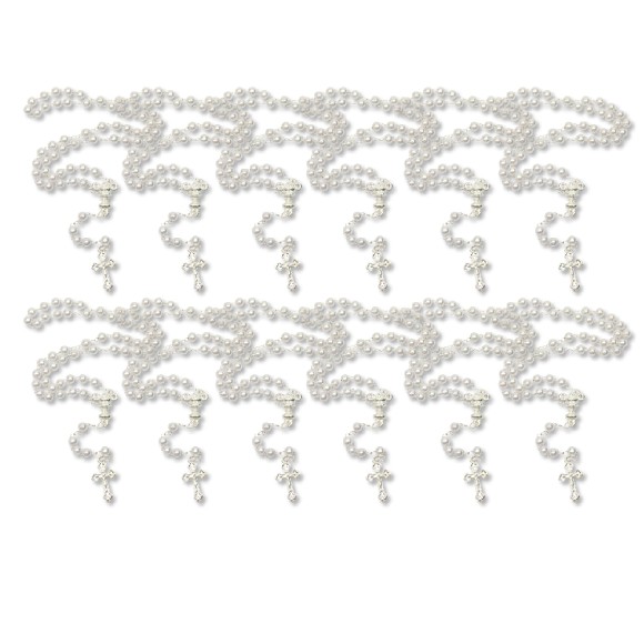 2. TE112020P12 - Terço de Pérola n°4 c/ 12un. Primeira Eucaristia Branco - 26cm