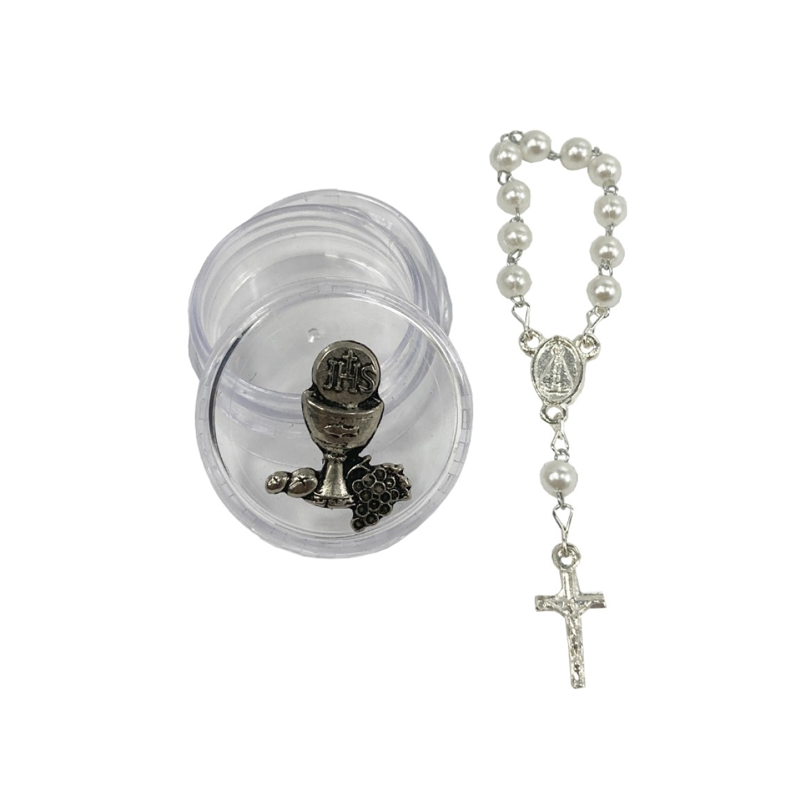 DZ112100 - Caixinha Primeira Eucaristia Níquel Envelhecido c/ Dezena - 3,8x1,7cm