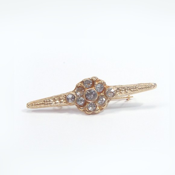 BR2005 - Broche p/ Manto de N. Sra. de Fundição c/ Strass Branco (F2) - 5,5x1,5cm