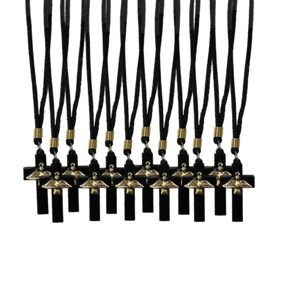CC370400P12 - Cordão c/ Cruz Madeira c/ Divino Espírito Santo c/ 12un. - 38cm