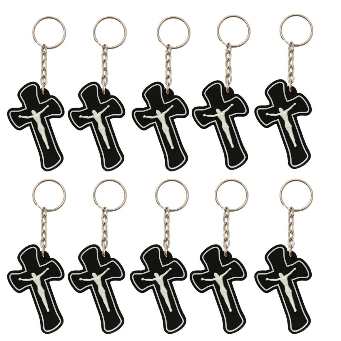 2. CH50865P10 - Chaveiro Crucifixo Emborrachado c/ 10un. - 10,5x3,5cm