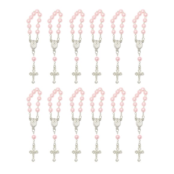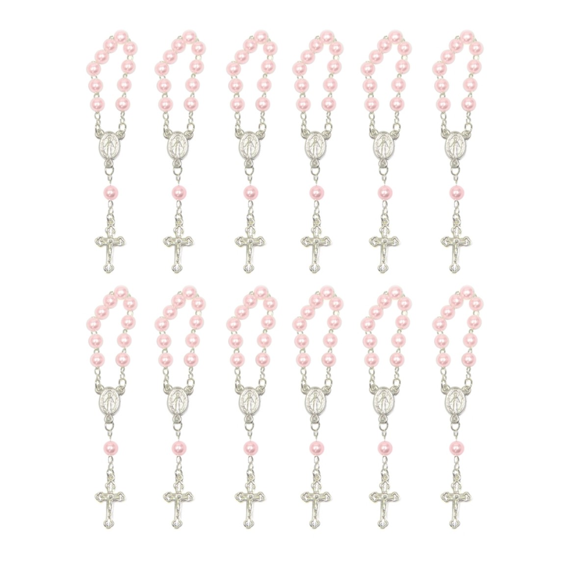 *Dezena Pérola Rosa c/12un. (Mini Terço) - 9,5x1cm .