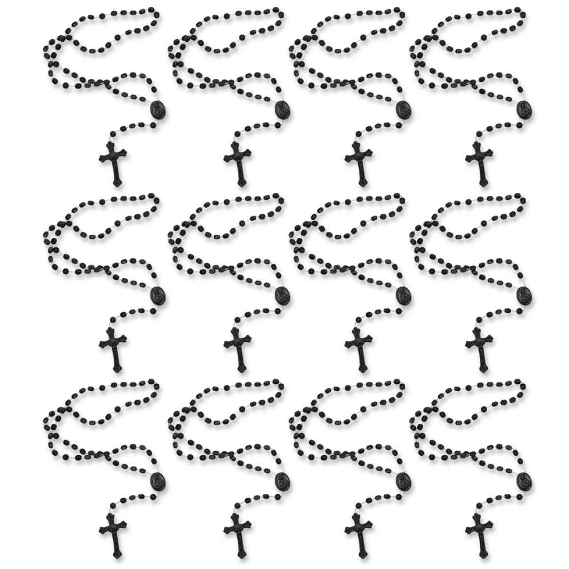 *Terço Acrílico Preto c/ 12un. - 32cm.