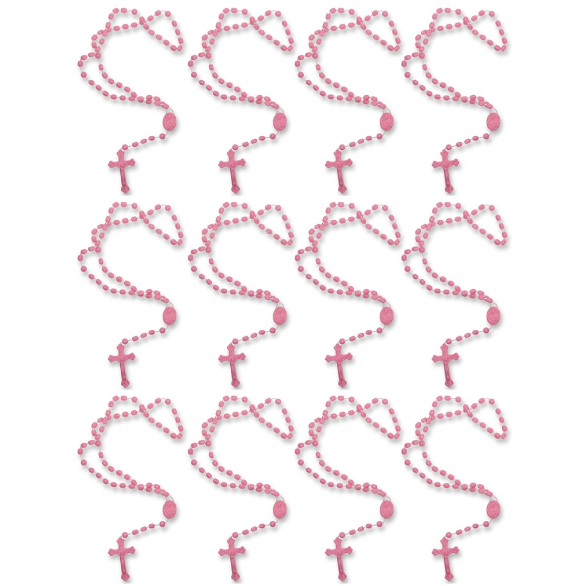 *Terço Acrílico Rosa c/ 12un. - 32cm.