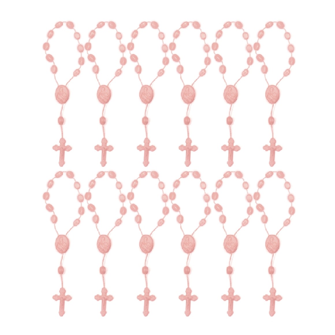 DZ05007P12 - Dezena de Acrílico Rosa Perolado c/12un. (Mini Terço) - 13,5x1cm