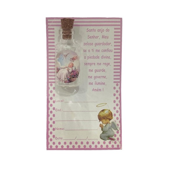 CT1460 - Cartão Lembrança c/ Garrafa Batismo Rosa - 10,5x6cm