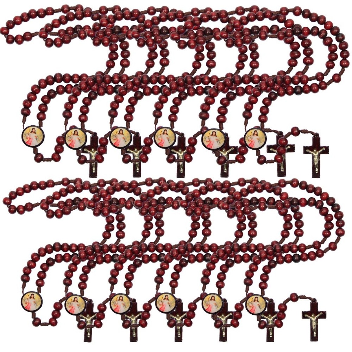 *Terço Jesus Misericordioso Madeira c/ 12un. - 37cm.