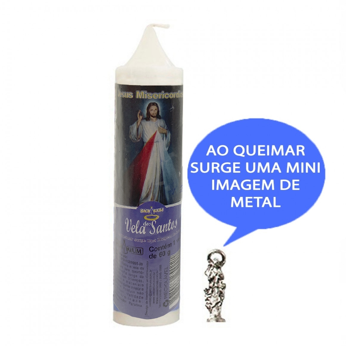 2. VE155129 - Vela Jesus Misericordioso c/ Santo de Bolso 14x3cm