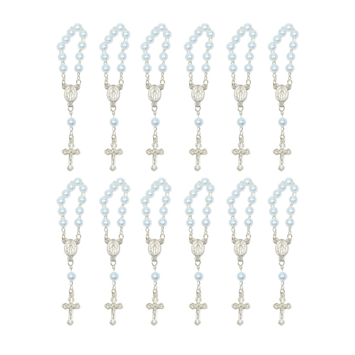 DZ1070006P12 - Dezena Pérola Azul c/12un. (Mini Terço) - 9,5x1cm
