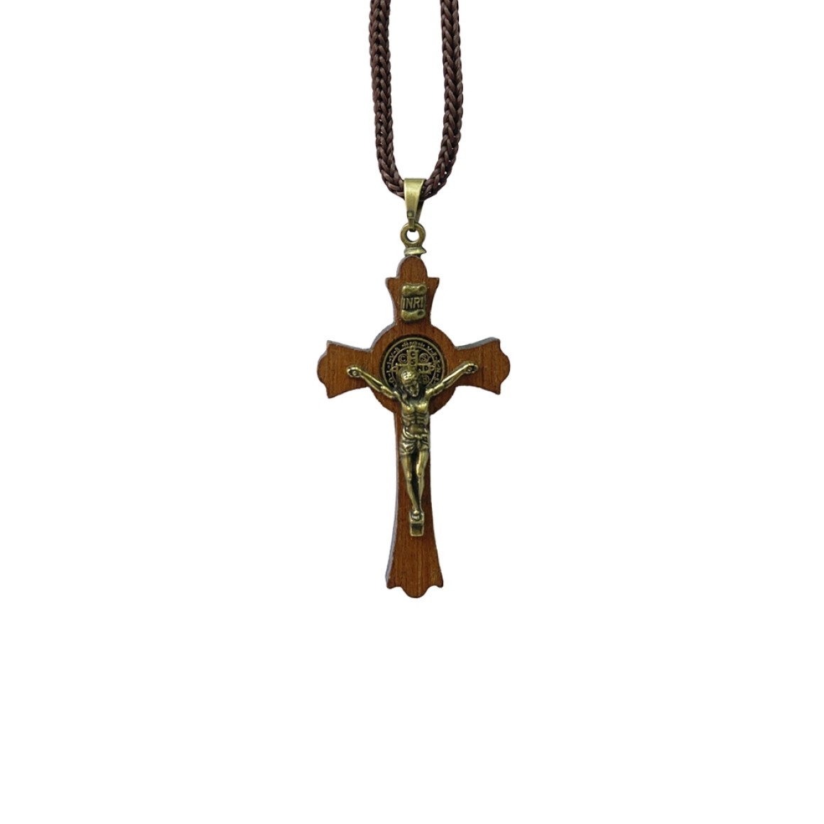 *Cordão Medalha de São Bento c/ Crucifixo Madeira.