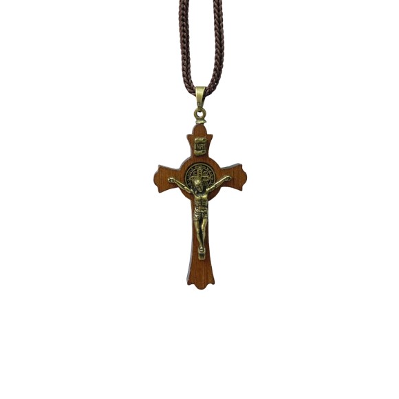CC360420 - Cordão Medalha de São Bento c/ Crucifixo Madeira (P) - 41cm