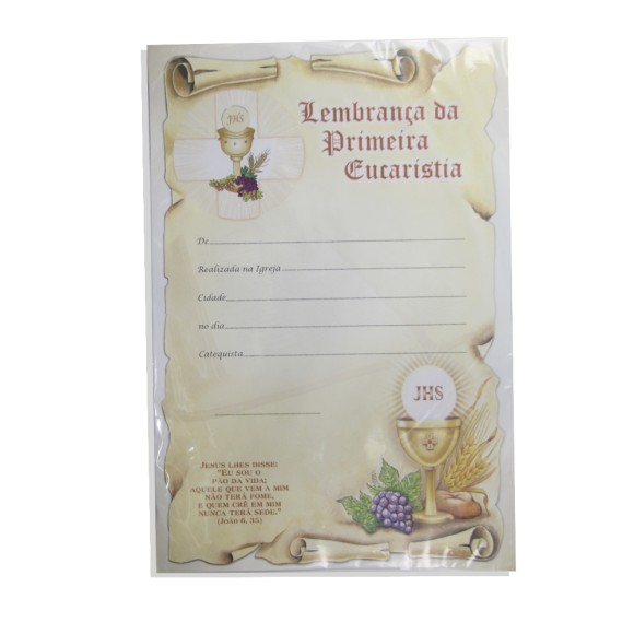 *Certificado de Primeira Eucaristia - 28x19cm.