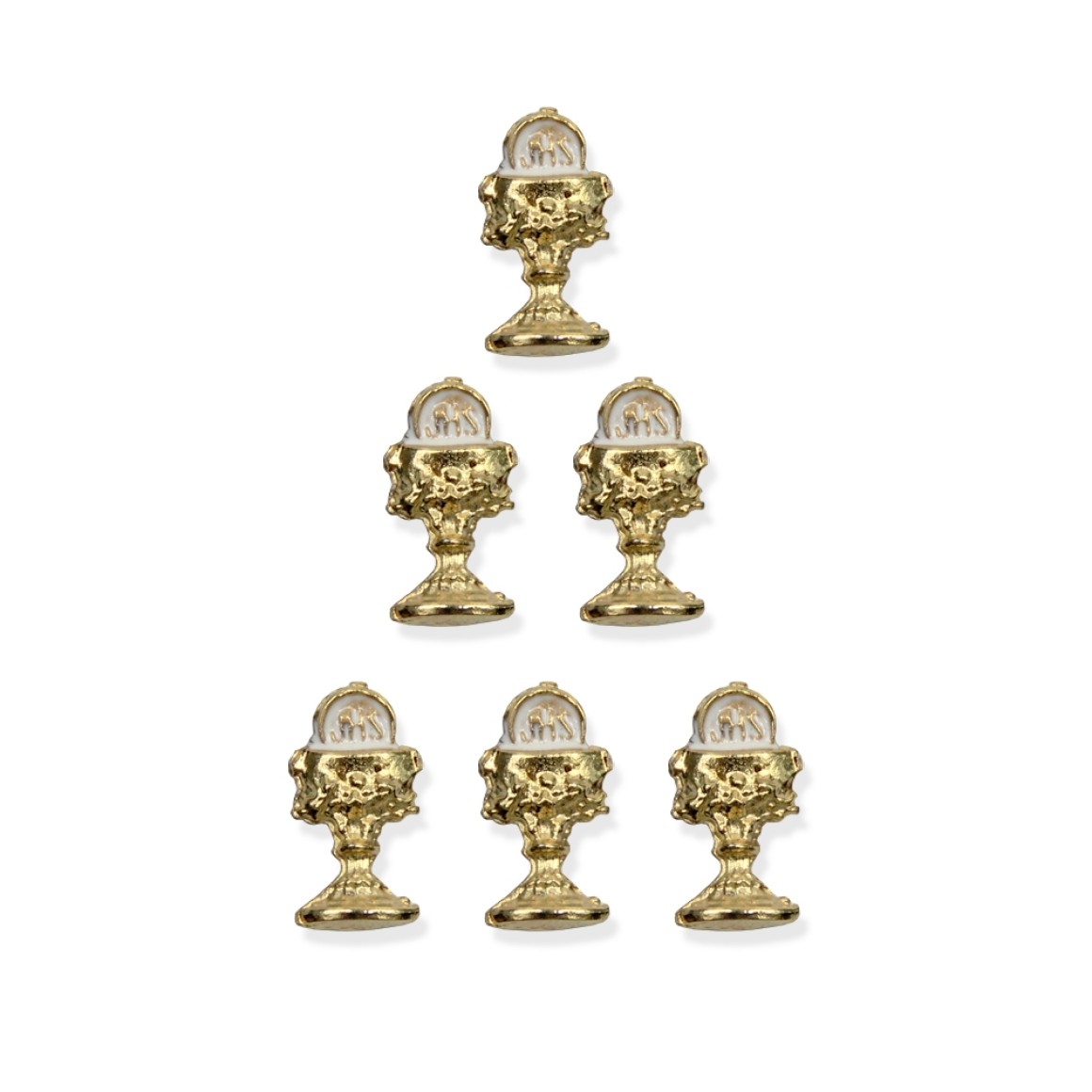BO112009P6 - Botton Primeira Eucaristia Cálice Dourado c/ 6un. - 1,5x0,8cm