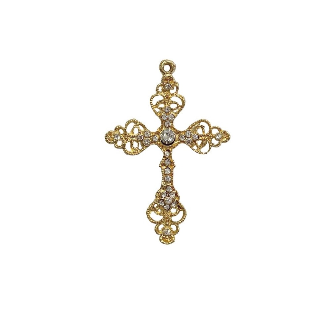 *Cruz Metal Dourada c/ Strass - 7,5x5cm.
