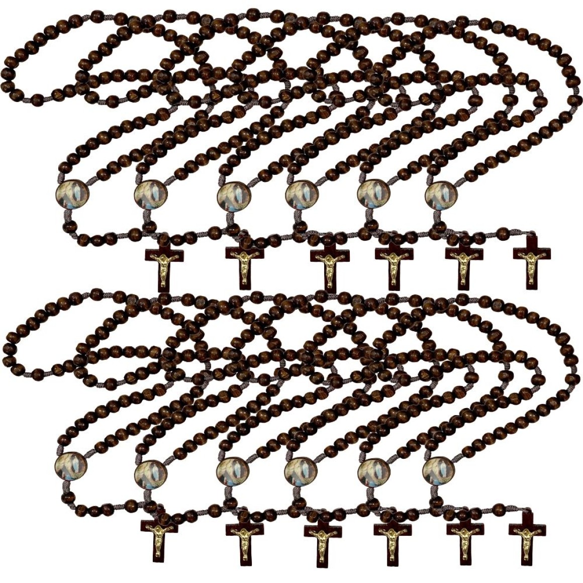 TE940140P12 - Terço N. Sra. De Lourdes Madeira c/ 12un. - 37cm