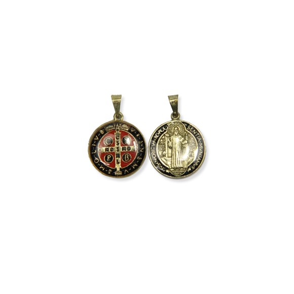 MD1420082P2 - Medalha São Bento Resinada Redonda Dourada c/ 2un. - 2,5x2cm