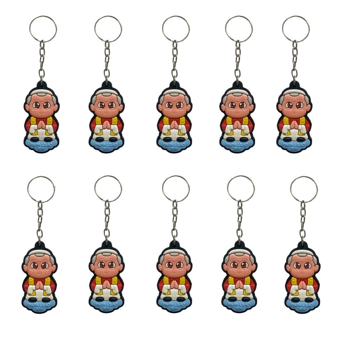 CH50443P10 - Chaveiro Papa Leão XIV Emborrachado c/ 10un. - 11,5x3cm