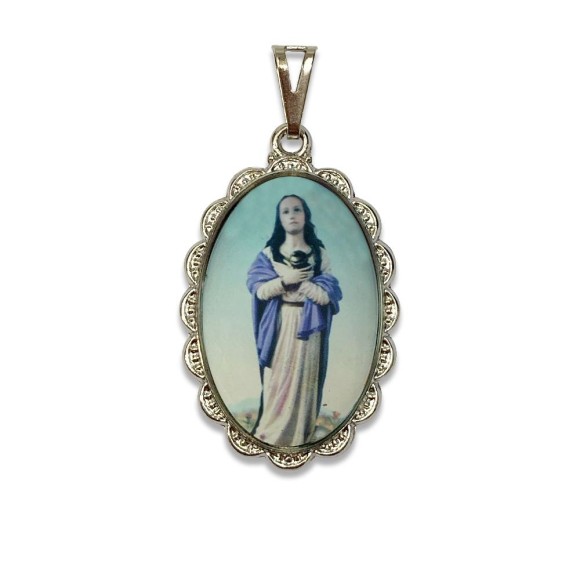 *Medalha Santa Maria Madalena Rendada Níquel - 4,3x2,7cm.