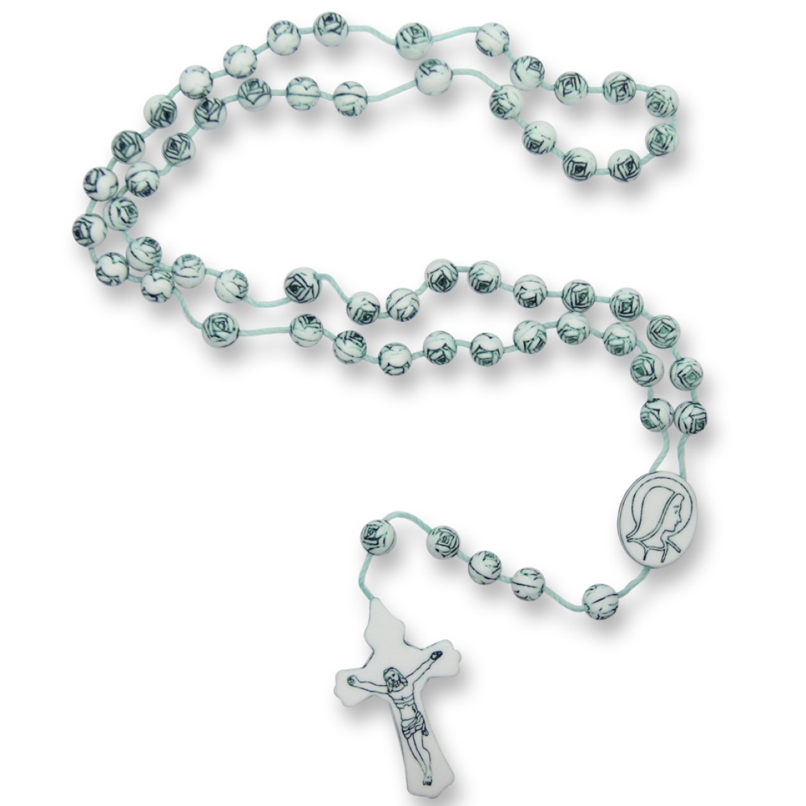 *O TERÇO DE ACRILICO contém contas de Rosas envelhecidas nº 6 e fio de nylon;