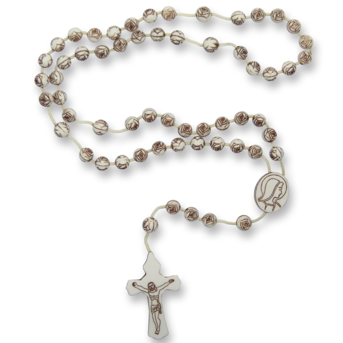 *O TERÇO DE ACRILICO contém contas de Rosas envelhecidas nº 6 e fio de nylon;
