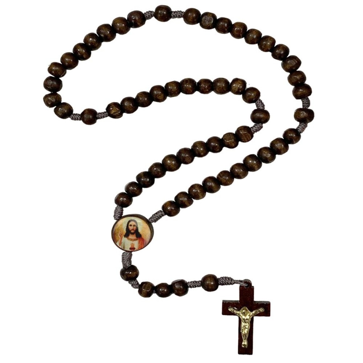 TE940500 - Terço Sagrado Coração de Jesus Madeira - 37cm