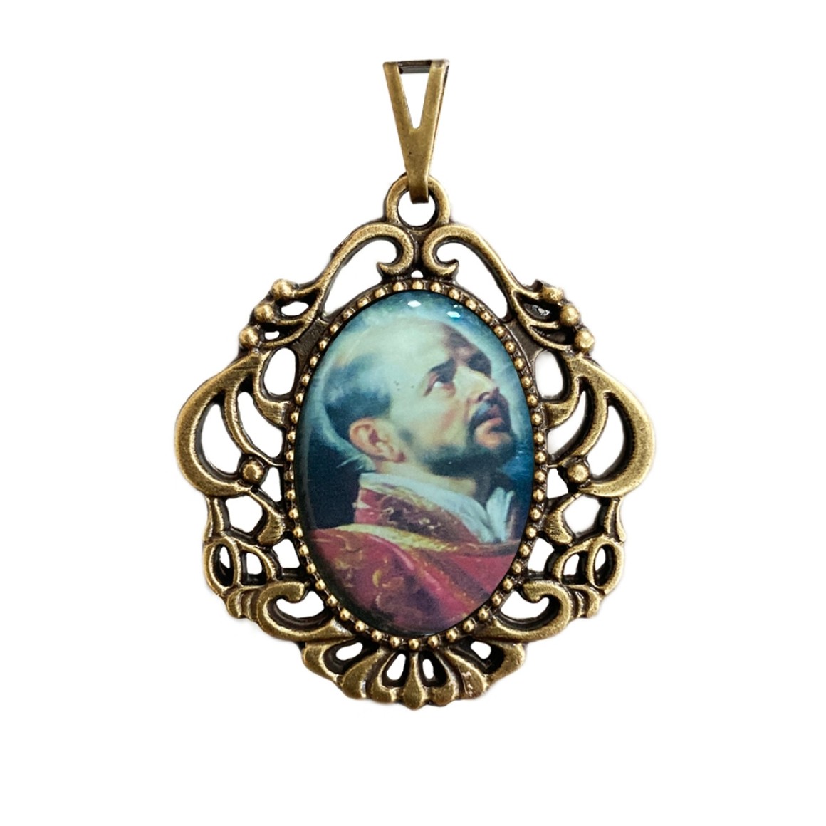 MD129609 - Medalha Santo Inácio de Loyola Camafeu Ouro Velho - 5x4,2cm