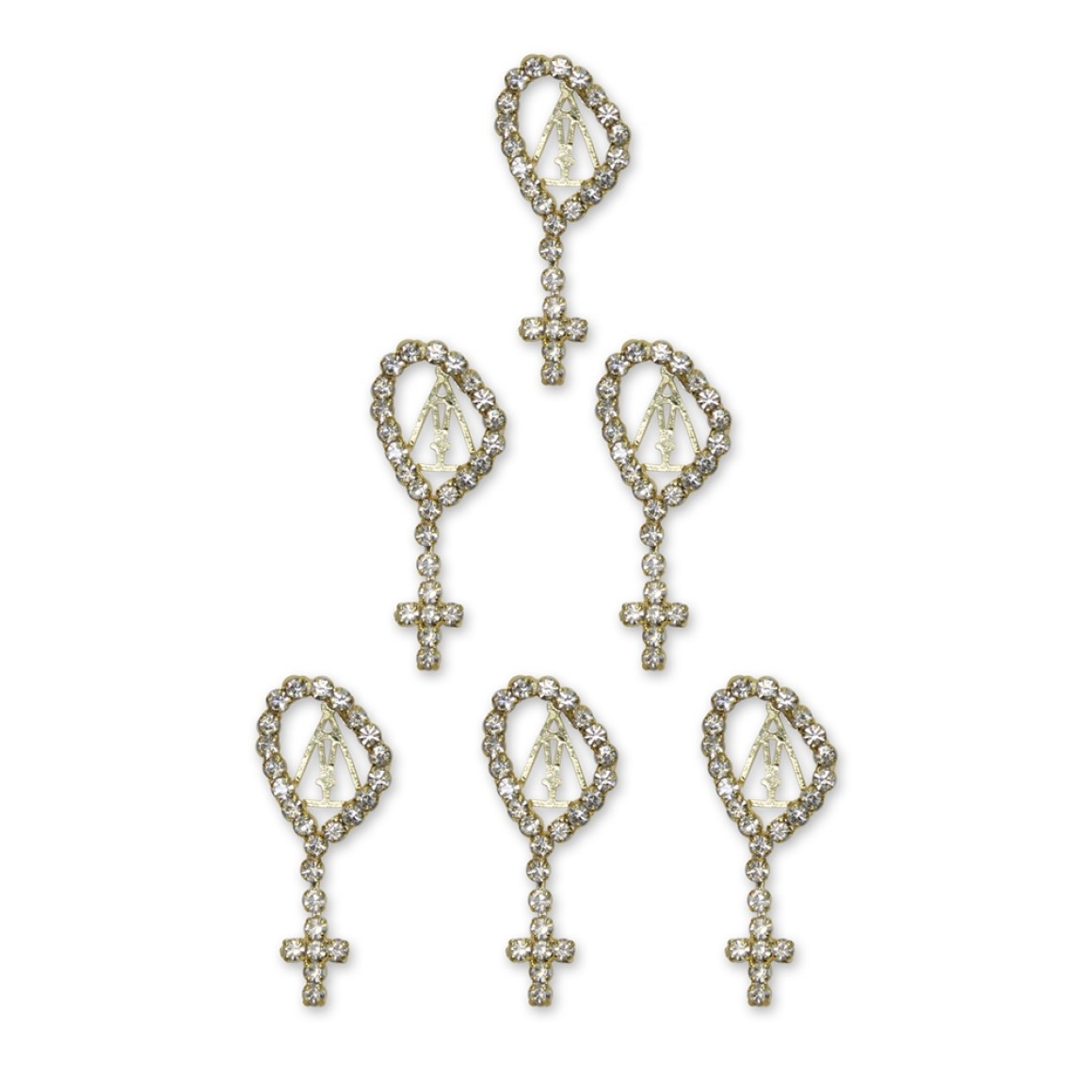 BO10100P6 - Botton Terço N. Sra. Aparecida Dourado c/ Strass 6un. - 3,2x1,4cm
