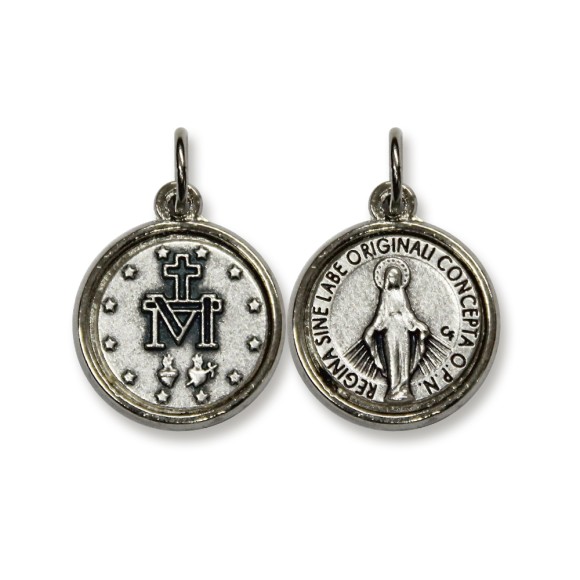 MD1170150 - Medalha N. Sra. Das Graças Italiana Redonda Prateada - 2x1,6cm