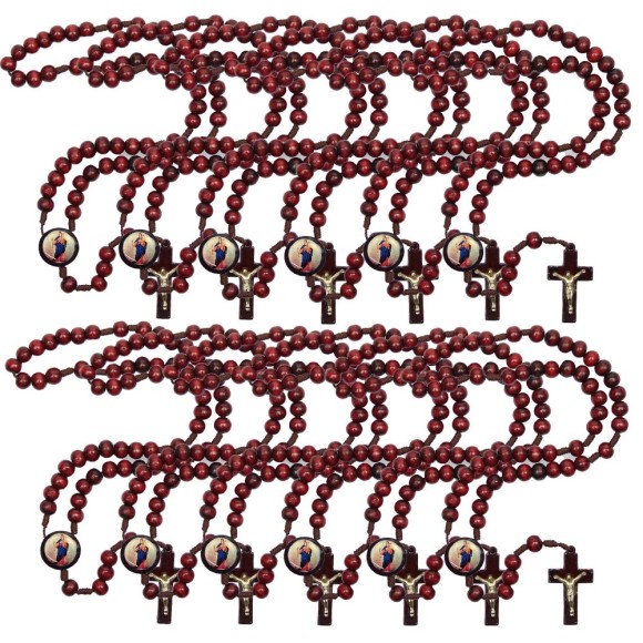 TE940121P12 - Terço N. Sra. Auxiliadora Madeira c/ 12un. - 37cm