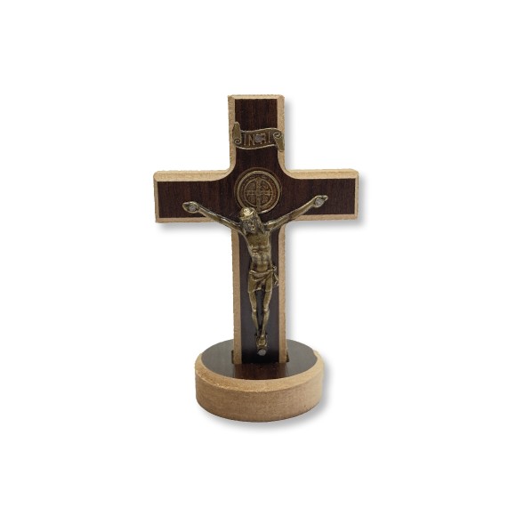 CU760108 - Crucifixo de Mesa São Bento Madeira - 12x8cm