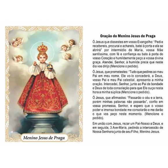 OP141414P100 - Oração Menino Jesus de Praga c/ 100un. - 6x4cm