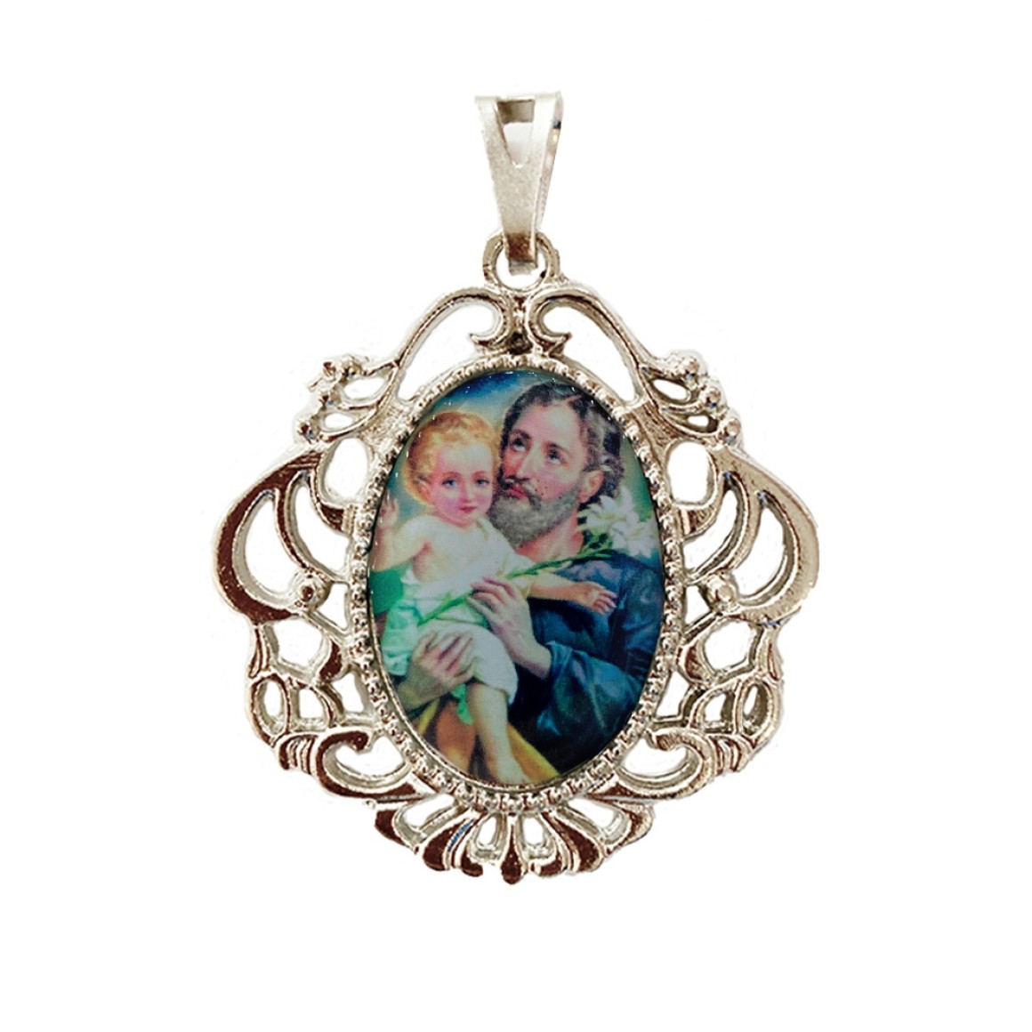 MD129465 - Medalha São José Camafeu Níquel - 4,5x4cm