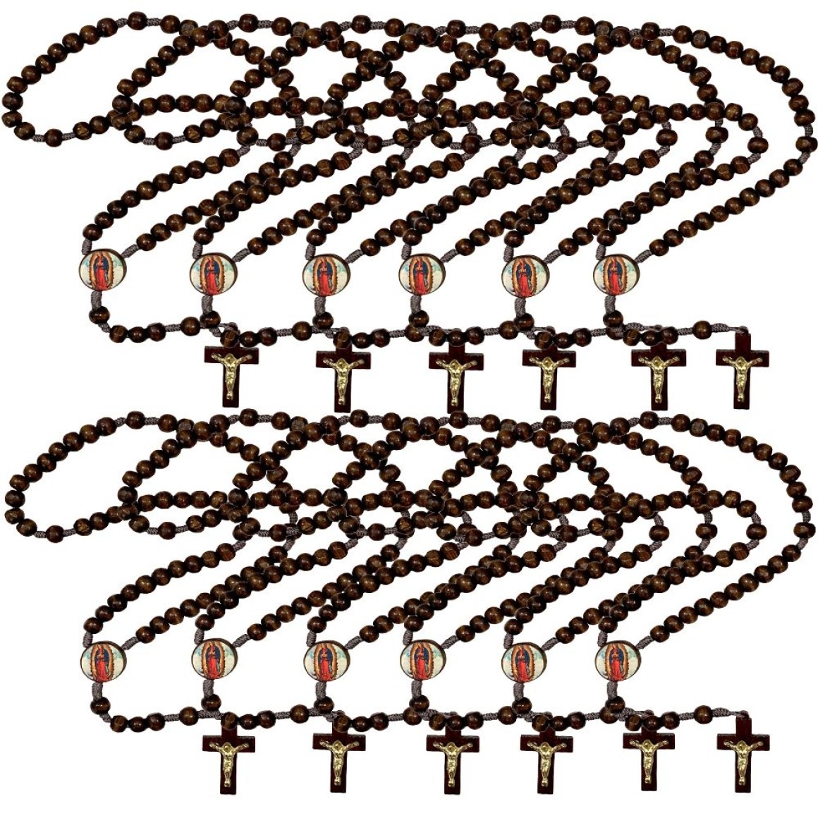 TE940130P12 - Terço N. Sra. De Guadalupe Madeira c/ 12un. - 37cm