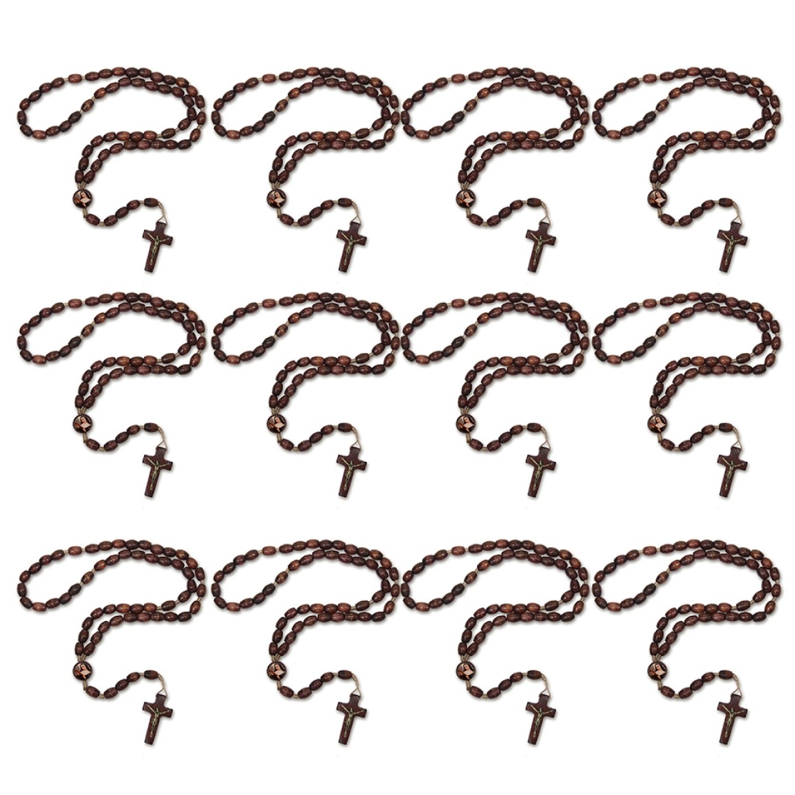TE942040P12 - Terço Santa Rita de Cássia Madeira c/ 12un. - 45cm