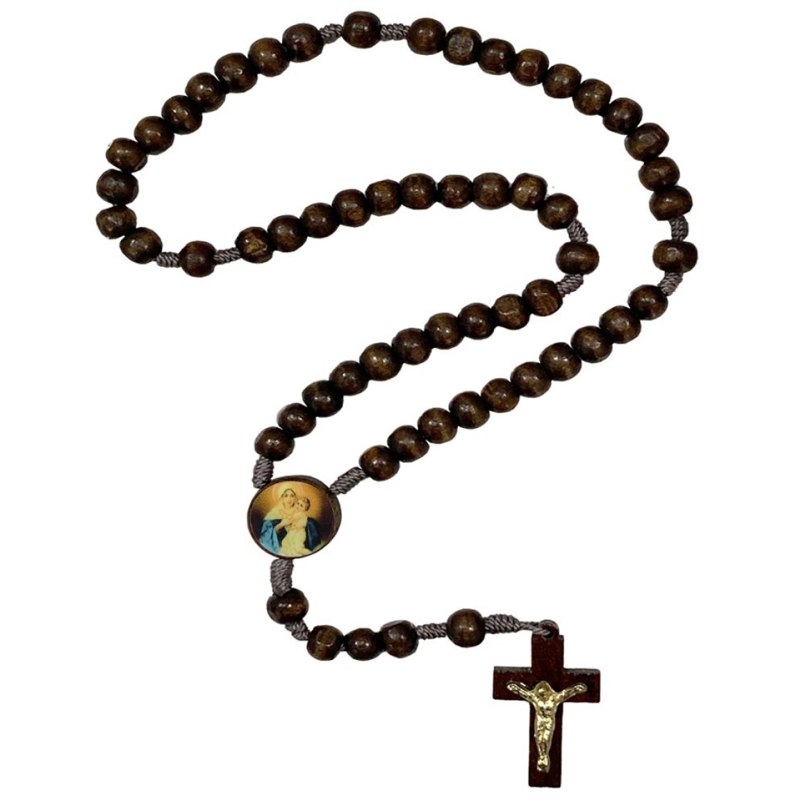 *Terço Mãe Rainha Madeira - 37cm.