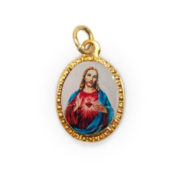 *Medalha de Alumínio Oval Dourada c/ 10un. Sagrado Coração de Jesus - 2X1,3cm.