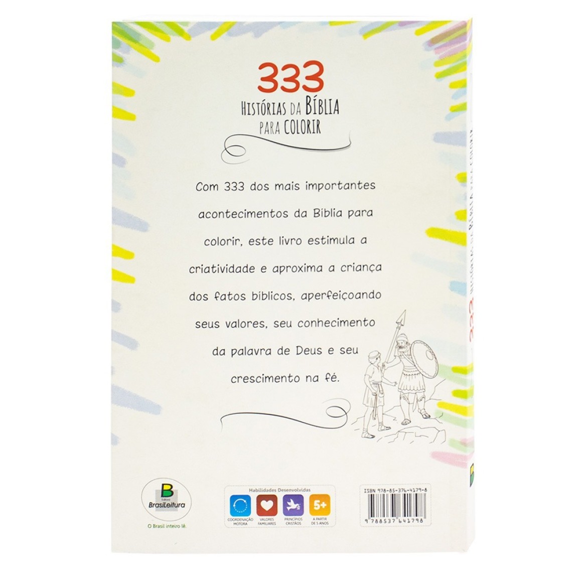 Com 333 histórias da bíblia, este livro estimula a criatividade e o desenvolvimento da criança. Também a aproxima dos fatos bíblicos, aperfeiçoando seus valores e seu conhecimento da palavra de Deus.