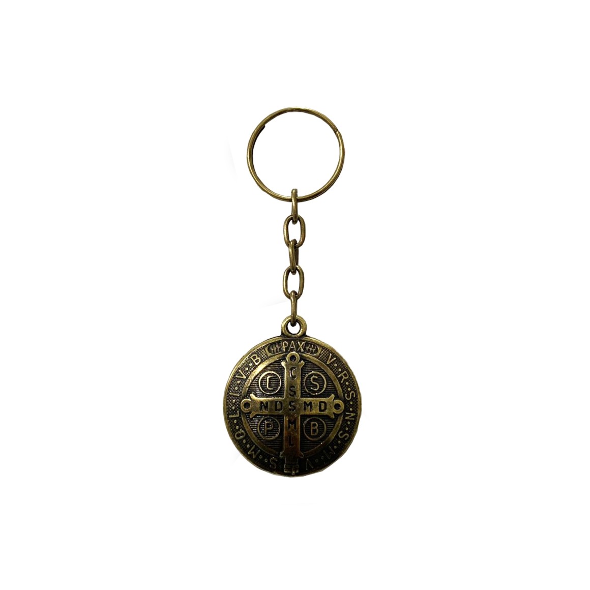 *Chaveiro São Bento Metal Ouro Velho - 9x3,5cm.