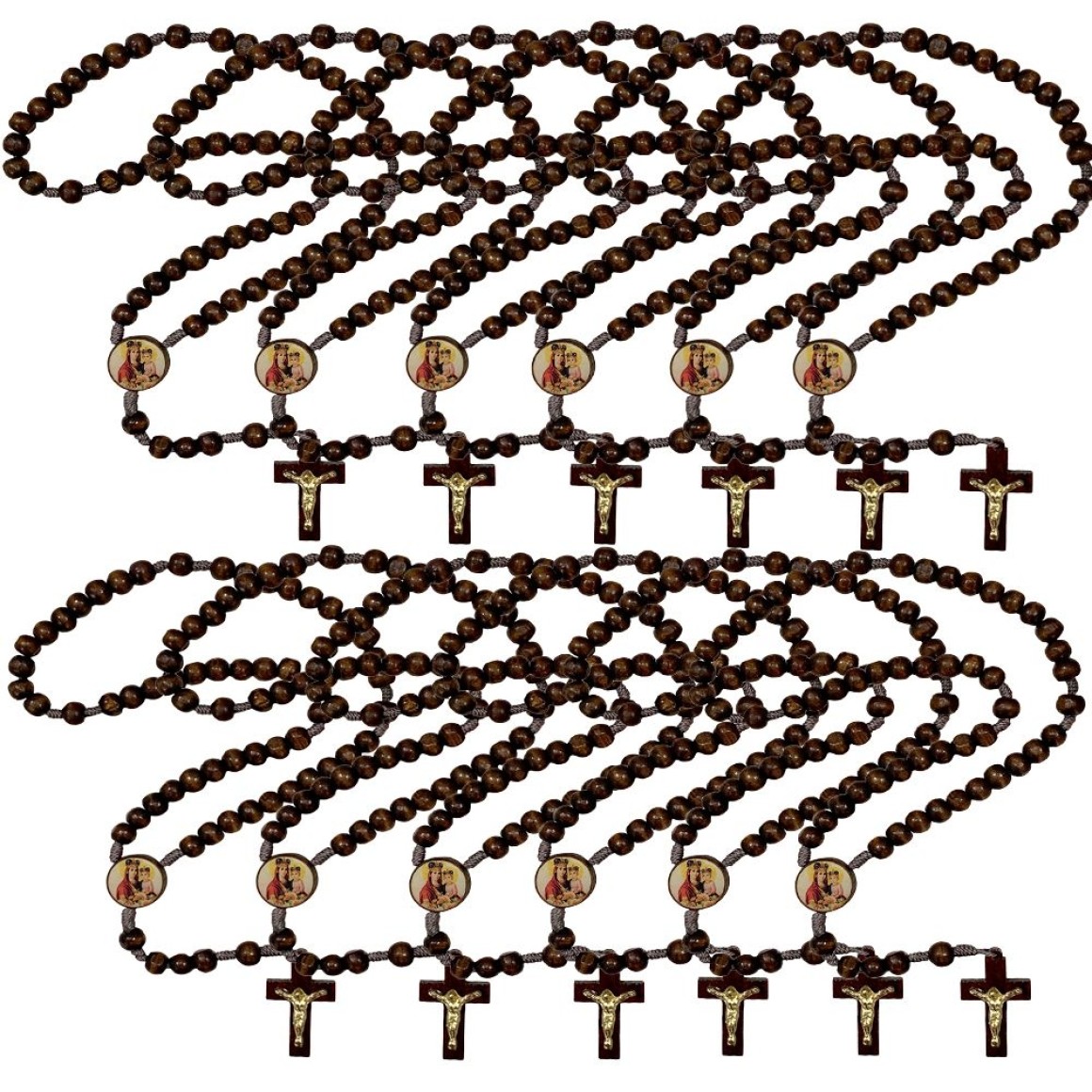 TE940175P12 - Terço N. Sra da Saúde Madeira c/ 12un. - 37cm