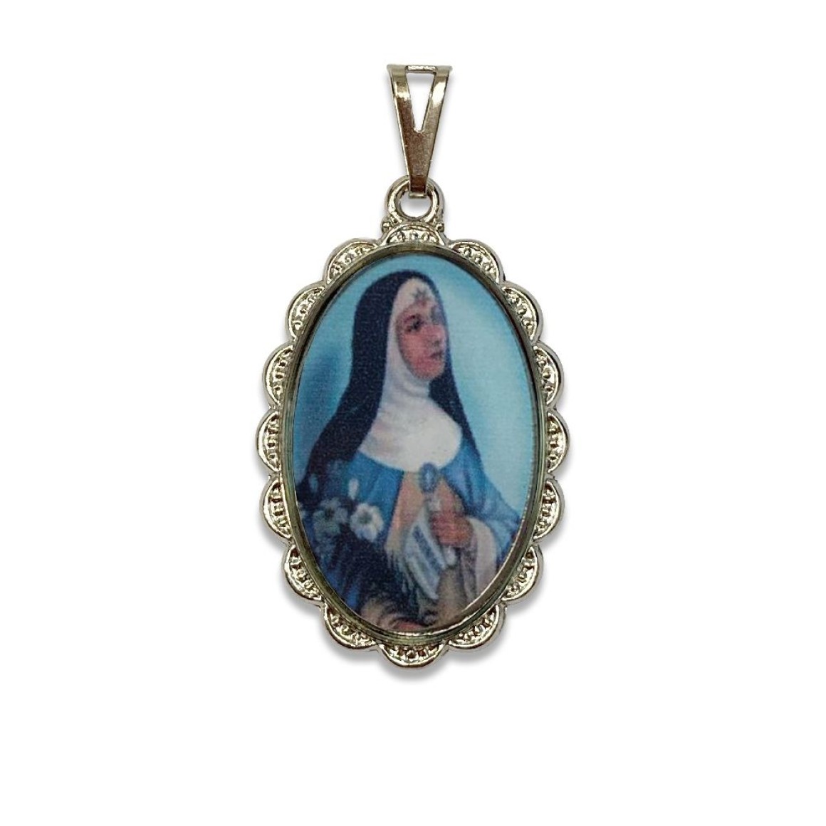 MD128165 - Medalha Santa Beatriz Rendada Níquel - 5x2,5cm