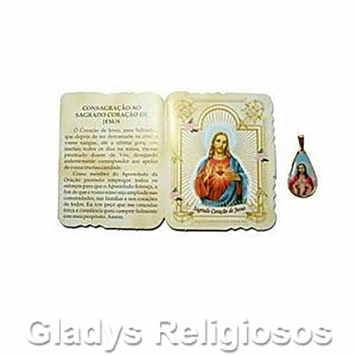 *Cartão Sagrado Coração de Jesus c/ Medalha - 7,5x6cm