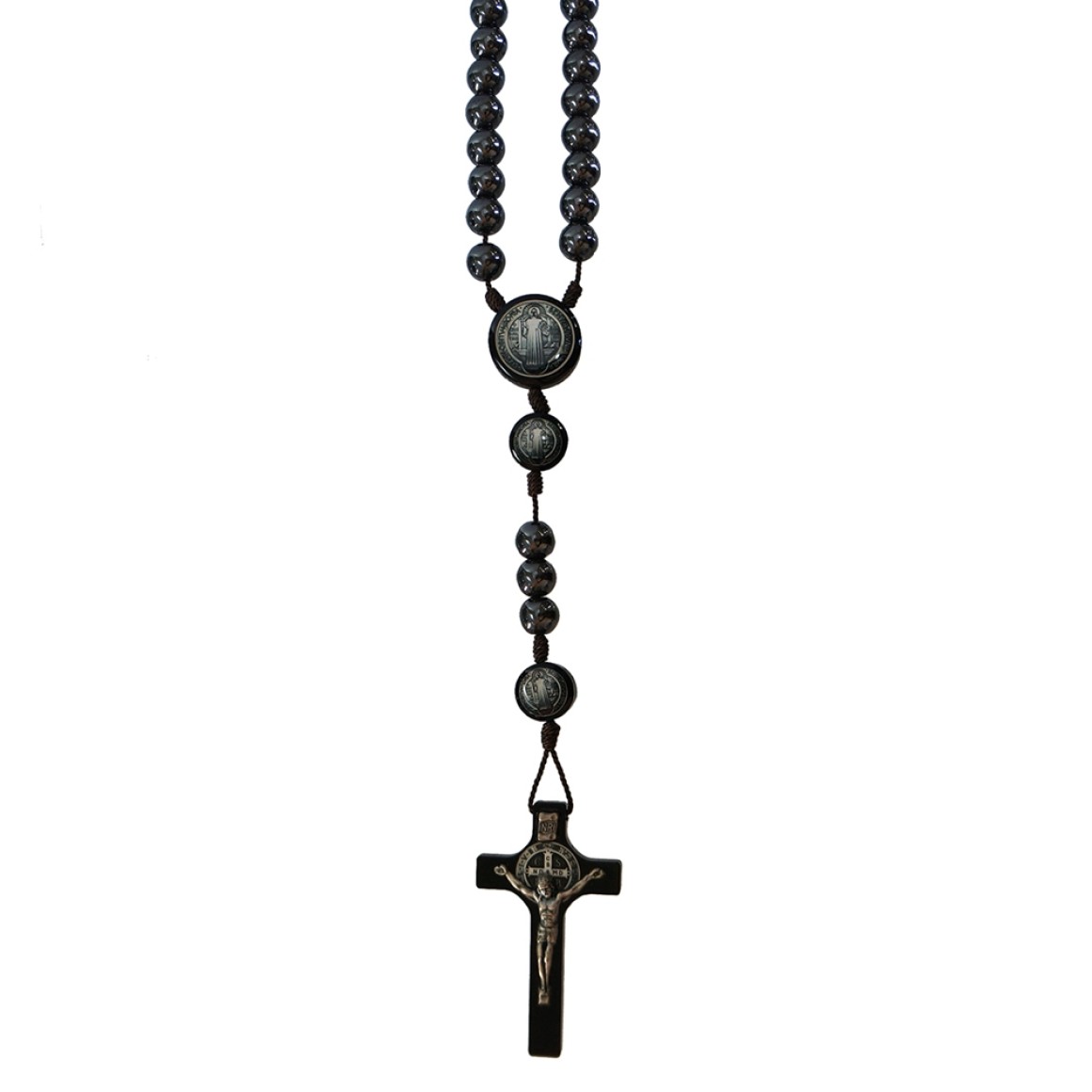 *Terço Hematita São Bento - 46cm.