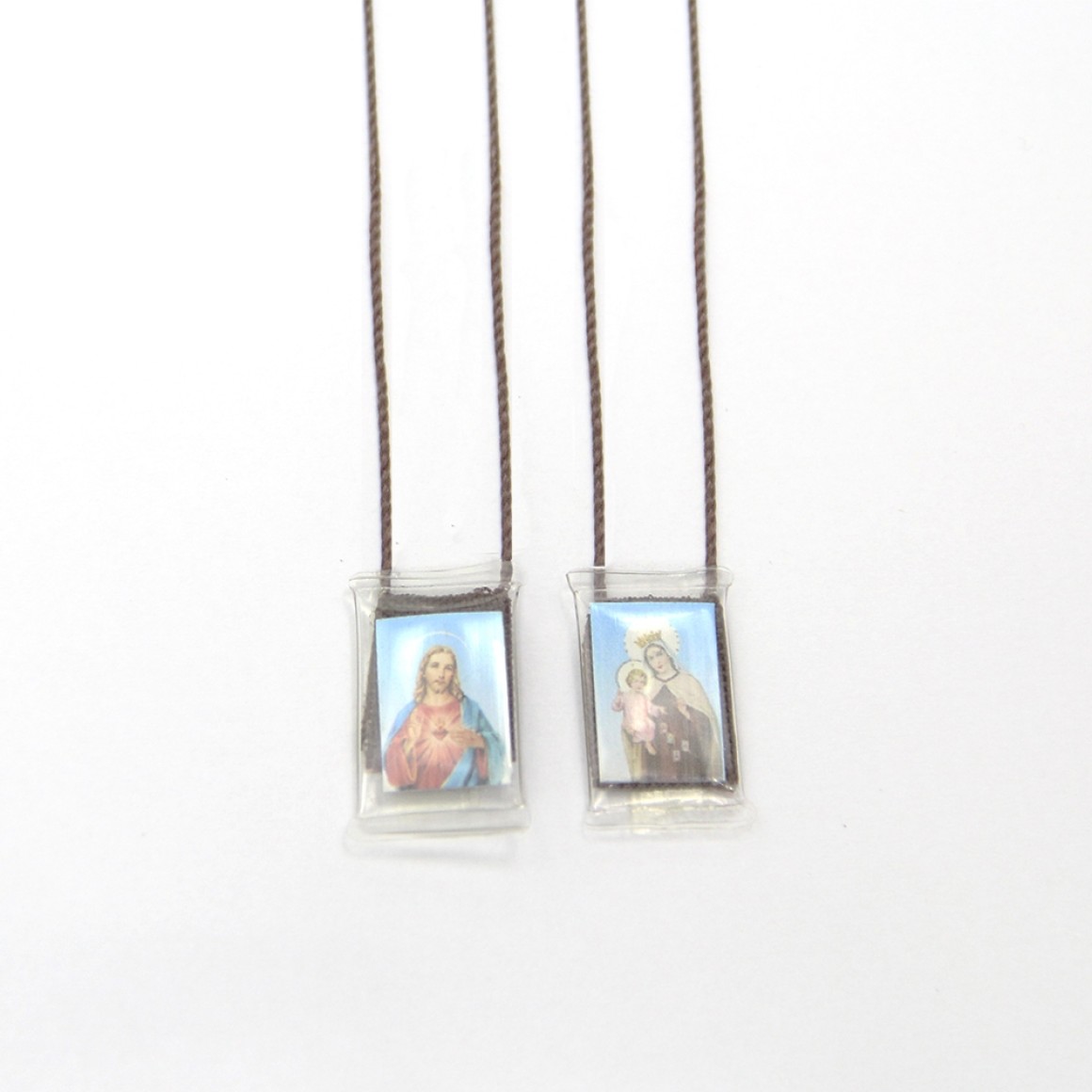 *Escapulário N. Sra. Do Carmo e Sagrado Coração de Jesus Plástico c/ Tecido.