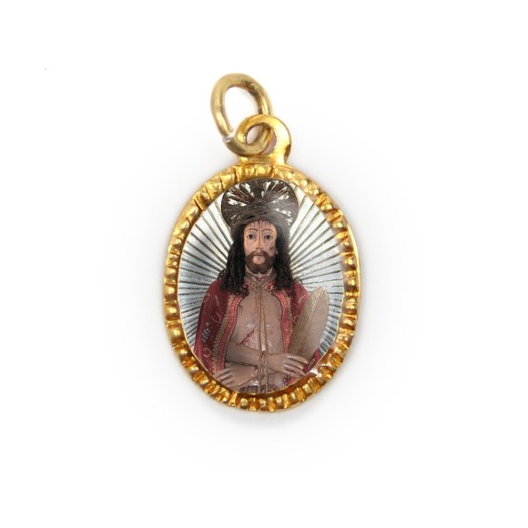 *Medalha de Alumínio Oval Dourada c/ 10un. Bom Jesus de Pirapora - 2X1,3cm.