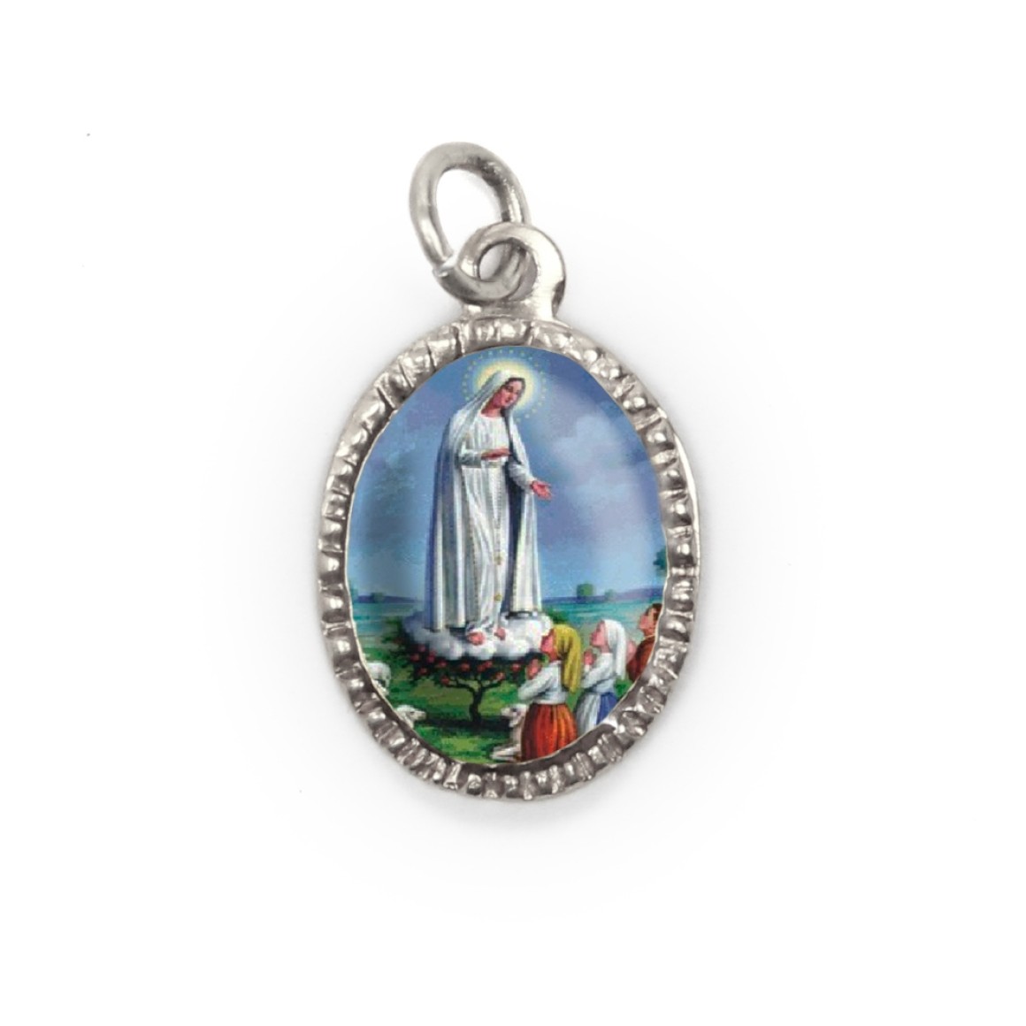 MD103608P10 - Medalha de Alumínio Oval Prata c/ 10un. N. Sra. De Fátima - 2X1,3cm