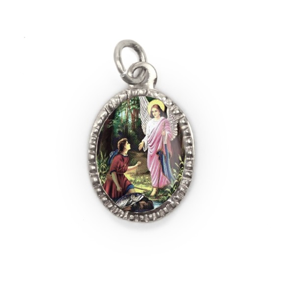MD103910P10 - Medalha de Alumínio Oval Prata c/ 10un. São Rafael Arcanjo - 2X1,3cm