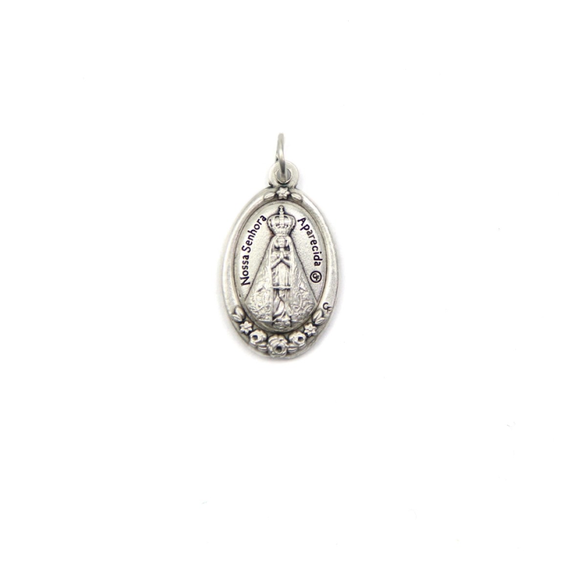 2. MD1180020 - Medalha N. Sra. Aparecida Italiana Oval Prateada - 2,5x1,7cm