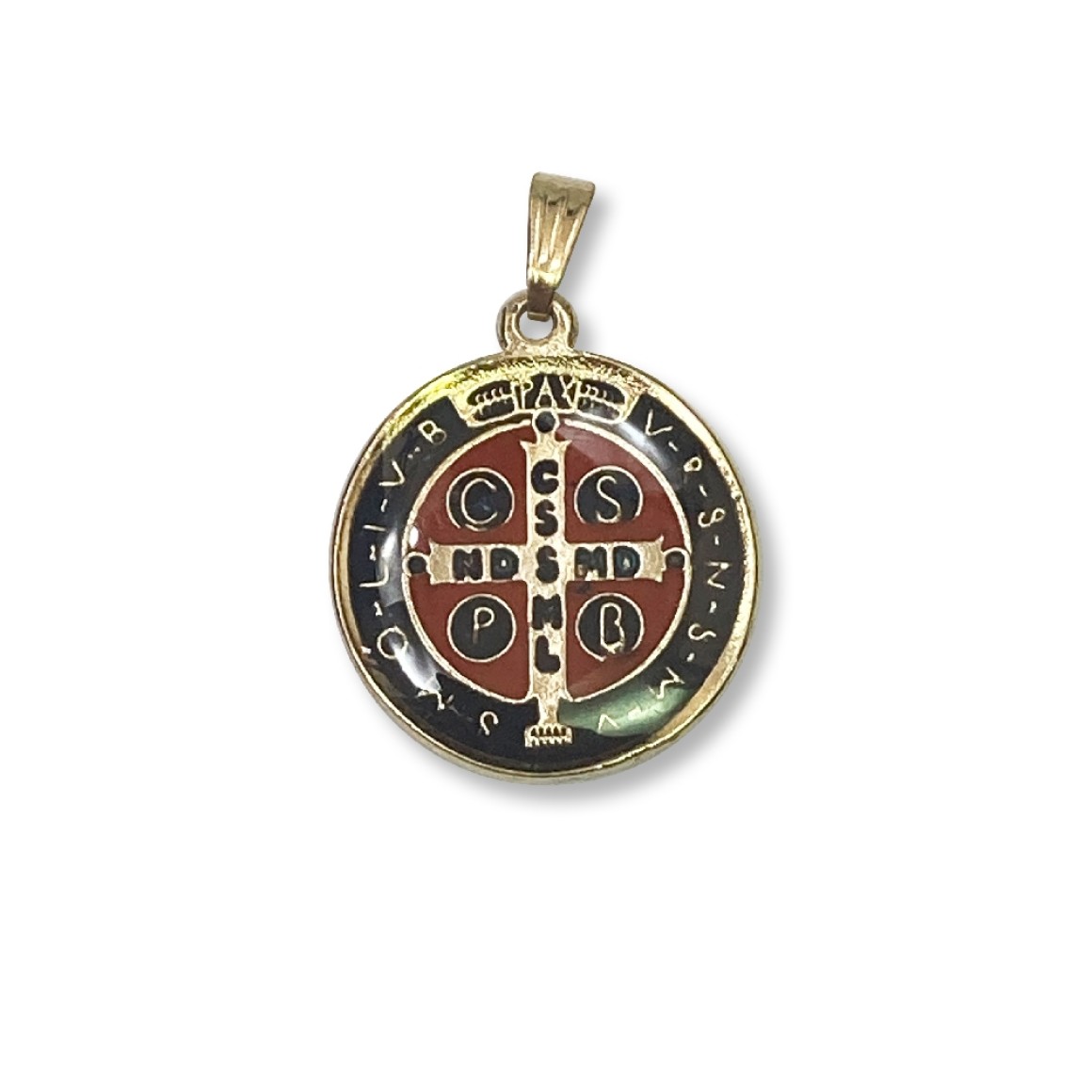 *Na frente da medalha são apresentados uma cruz e entre seus braços estão gravadas as letras C S P B, cujo significado é, do latim: Cruz Sancti Patris Benedicti – "Cruz do Santo Pai Bento".