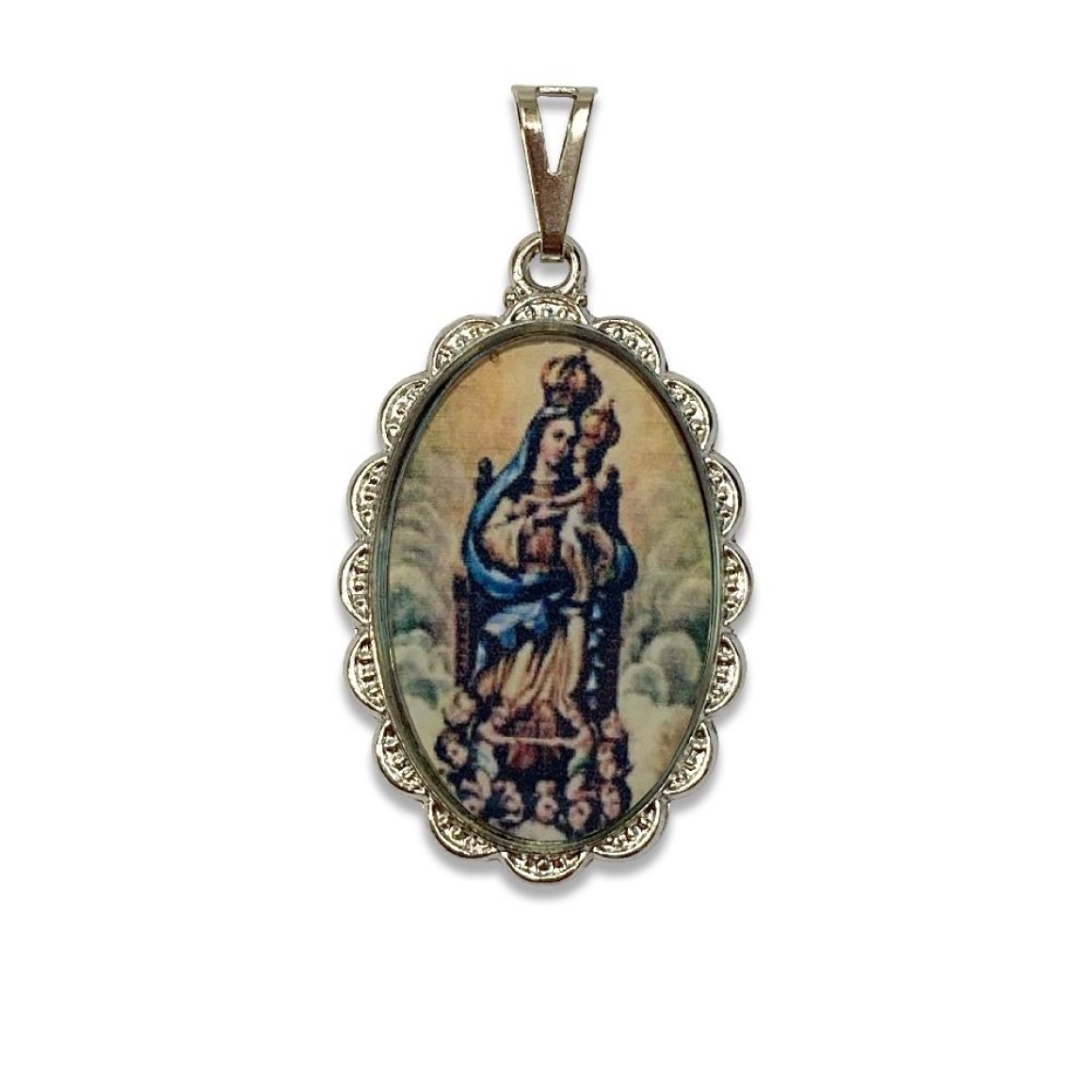 *Medalha N. Sra. Do Mont Serrat Rendada Níquel - 5x2,5cm.